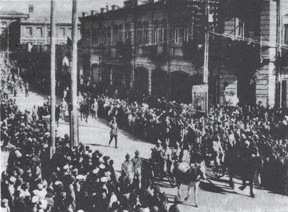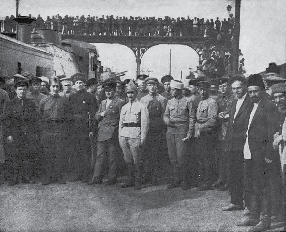 Киров, Микоян и Орджоникидзе с Красной армией в Баку, 1920 г.