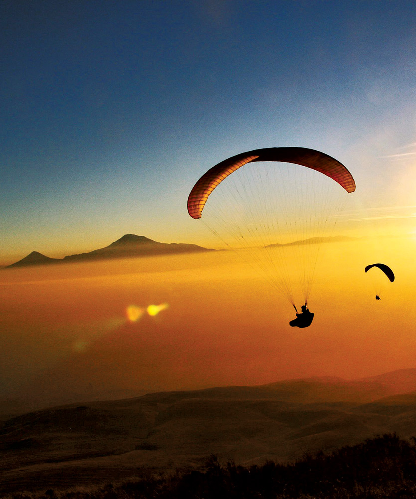 Flying season is quite long in Armenia – from May till the end of November. In winter flights are rare. The enthusiasts of paragliding in Armenia have started practicing it since 1996, and currently, there are a few companies which provide this type of service – the Sky Club, AeroClub and Armenian Paragliding Club. It’s important to note that if you aren’t experienced and have a certain fear, the best option for you will be tandem paragliding i.e. a flight with a pilot. The vehicles designed for this type of paragliding are usually faster with higher trim speeds and are more resistant to collapse. If you choose tandem paragliding, the pilot will take care of everything for you and you will just be admiring the fascinating beauty of the Armenian highlands. Besides, in this case, you won’t need physical skills or training to paraglide. After a 5-minute instruction, you will make the take-off run, and the next minute you will leave all your fears behind and enjoy the adrenaline rush. Of course, experienced and fearless participants can have a solo flight. The choice is yours. Bring your hiking boots or running shoes, take on some warm clothes, and have some sunscreen on your face. This is all you need.