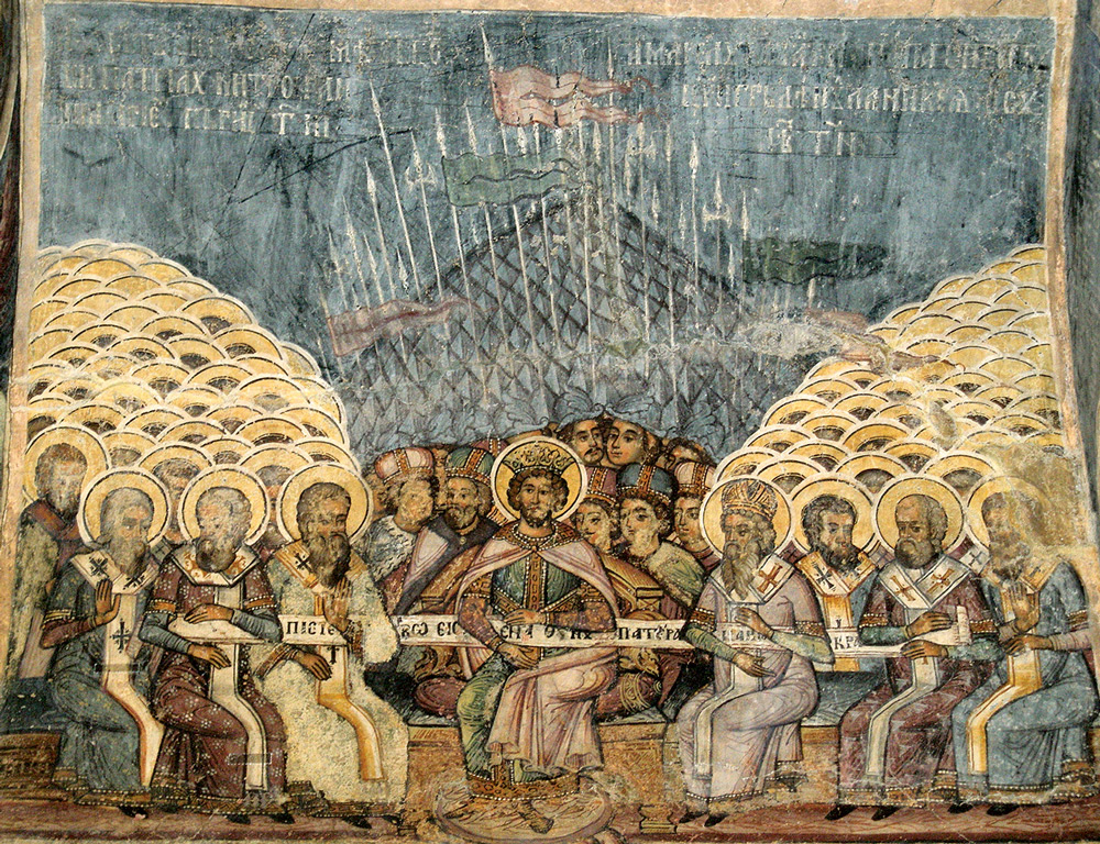 In 325 CE, Roman emperor Constantine held a clergy conference at the city of Nicaea in Asia Minor (Today’s city of Iznik in Turkey). The agenda of the conference was to establish the holy Trinity as we know it today and excommunicating all those who opposed that idea. The Council called “Universal” included lots of clergy representatives from various parts of the Christian world then, including for instance Alexander of Alexandria (funny name, isn’t it?) and some representatives from Armenia, namely Aristakes, brother of Gregory the Illuminator, as well. The final documents adopted by the Council, called as Nicene Creed, which later became the cornerstone of many traditional churches, including the Roman Catholic and the Greek Orthodox is preserved in three somewhat different versions, including one in Latin, another in Greek and the third one in Armenian.