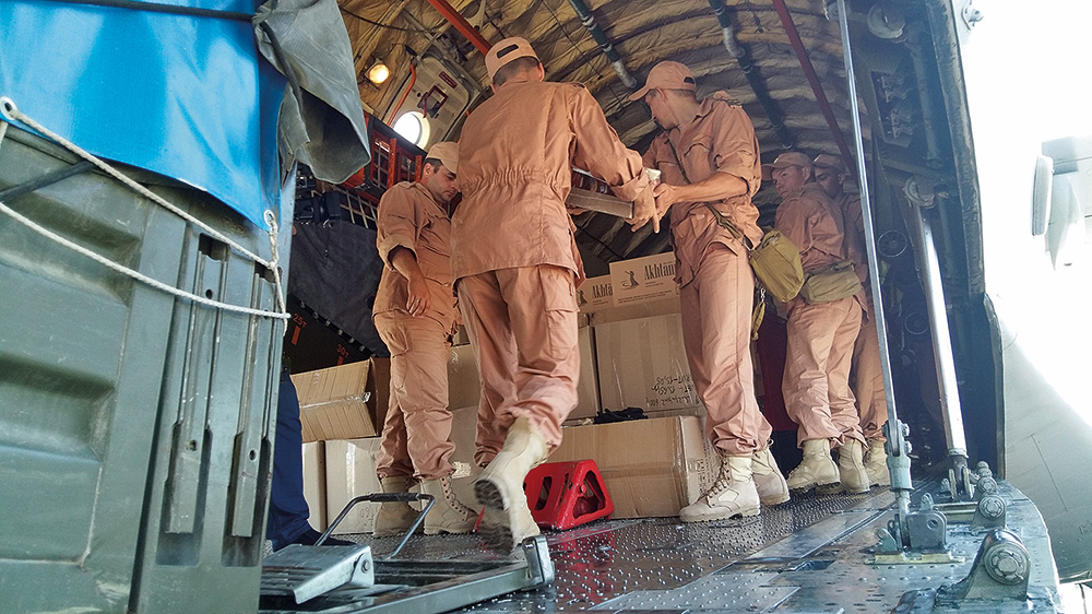 Our main concern about delivering the aid was transferring it to Aleppo from the Russian airbase Hmeymim in Latakia. The road from Latakia to Aleppo passes through destroyed towns, villages, and settlements. In many places, the road is only a few kilometers away from armed terrorist groups, there are also many cases of road bombings, kidnapping and snipers targeting civilian cars.