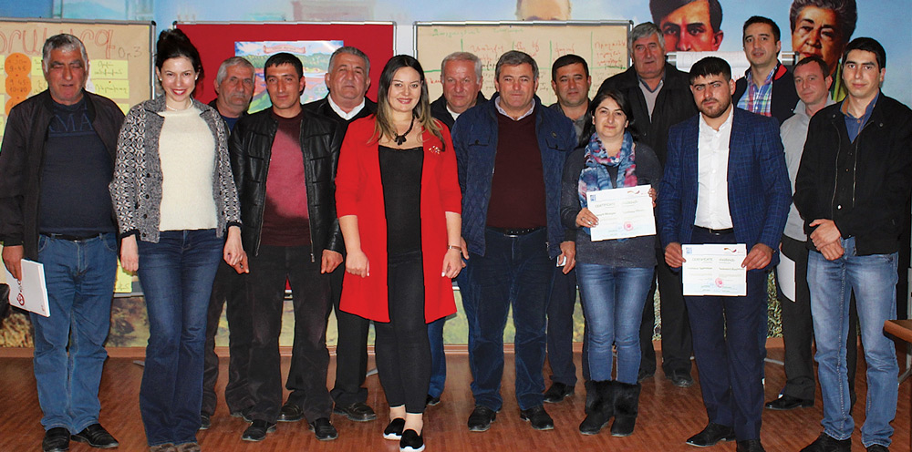 The trainers from PAARA and GIZ went through an intensive qualification enhancement programme in Georgia, where a group of potential trainers from the three South Caucasus countries gathered to expand their knowledge. The IES training course has a flexible format and can be adjusted between 3-5 days, depending on the target group. The contextualized training course was piloted for the heads of communities, administrative representatives of settlements, and local council members of Aragatsotn and Shirak regions. Around fifty-five participants took part in the sessions. As a result of the training, the communities identified their priority ecosystem services and, for instance, Tsaghkahovit community included environmental measures in the existing 5-year community development plan and the 2020 planned action plan.