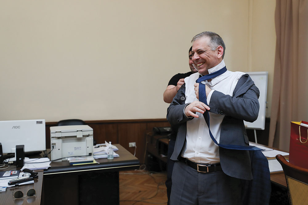 While the 1990s, the Protocol Division of the National Assembly of the newly independent republic had merely 3 or 4 employees, it currently employs more than 20. Armenia as a state had grown in importance and the number of official visits has increased. The main protocol points on how to receive and what kind of visits are to offer to presidents, ambassadors, official delegations more or less uniform throughout the world and the mission of the knights of the protocol is to maintain that order. Admittedly there can be some peculiar cases, like for instance the Ambassador of our neighboring Georgia. He showed up at the ceremony of handing his credentials dressed in the Georgian national costume decorated with gazyrs (pockets for bullets) and a dagger.