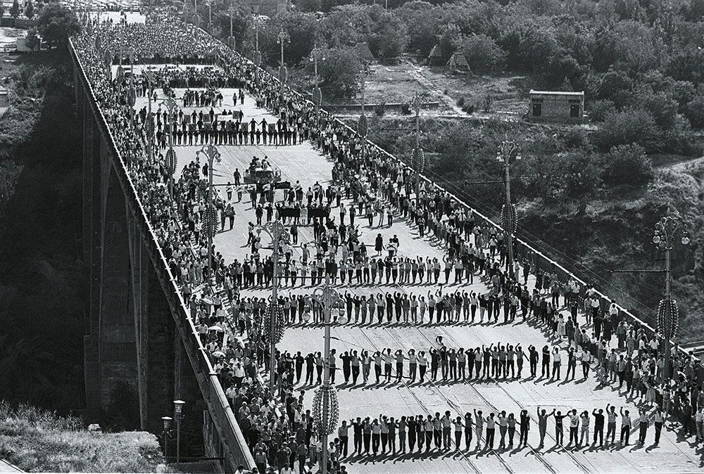 Since February 1988 in Yerevan rallies broke out in support of the wish of the NKAO, already expressed formally, to secede from the Azerbaijani SSR and become a part of the Armenian SSR. The mood in Moscow immediately expressed in the “central” (i.e. all-Soviet Union) media, particularly in the Central TV’s Vremya news program which called the protesters “extremists”, whose number by that time exceeded tens of thousands. Also the central authorities intervened into the ongoing anti-Armenian pogroms in the Azerbaijani city of Sumgait with a “delay” of several days, which seemed an impossible occurrence under the over-centralized power structure in the country of soviets.