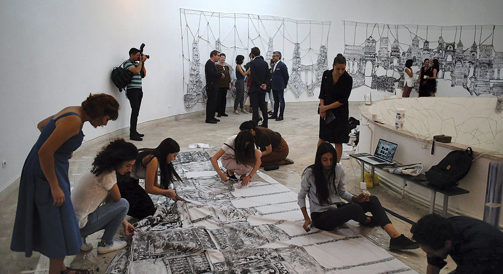 Students of Panos Terlemezyan State College of Fine Arts actively working with Kevork Mourad on the implementation of his Artwork, The Immemorial, produced and exhibited during ICAE2018 in Yerevan