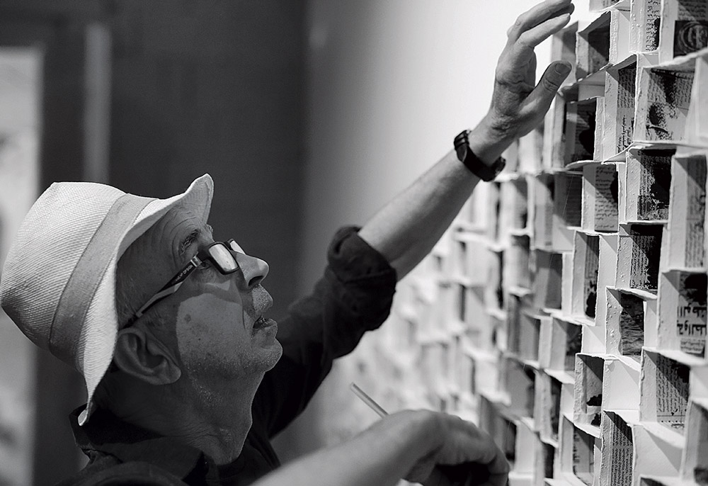 Kevork Mourad, setting up his Artwork: The Immemorial, 2018 – produced and exhibited during ICAE2018 in Yerevan