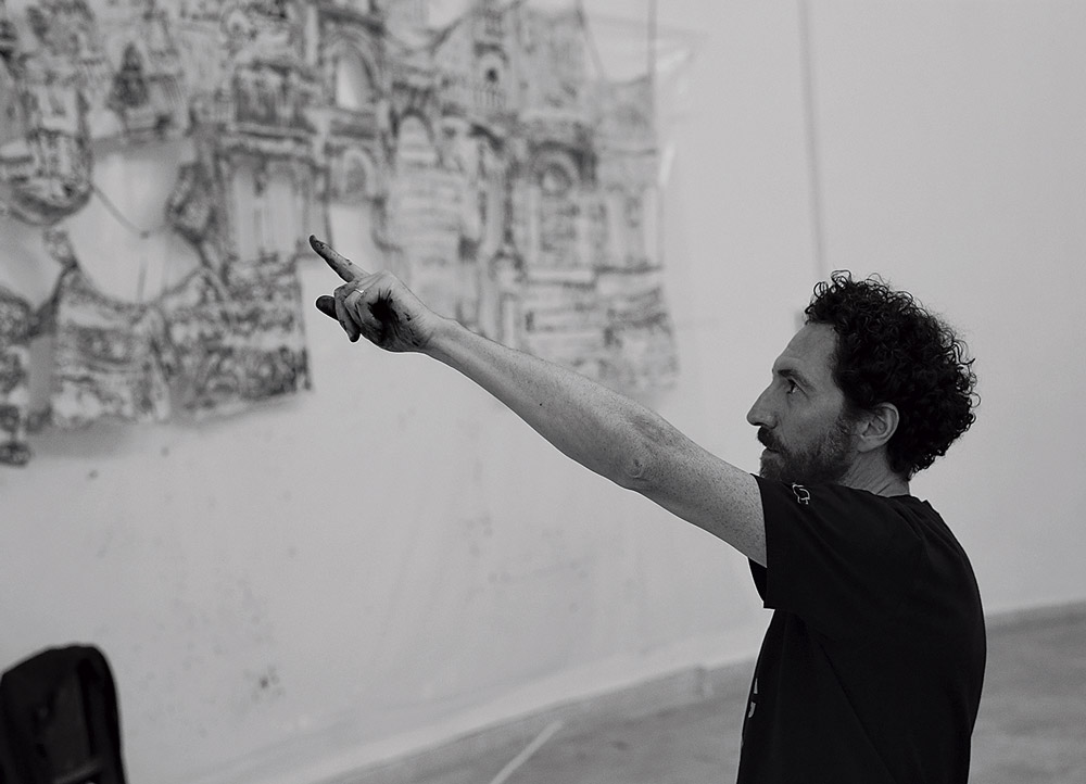 Imran Qureshi, setting up the Artwork: And They Still Seek The Traces of Blood, 2018 – produced and exhibited during ICAE2018 in Yerevan