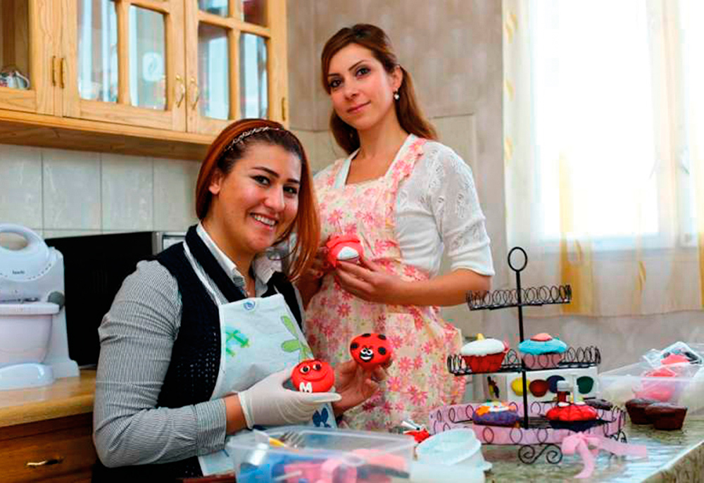 Azniv Kouyumjian left Aleppo and came to Armenia in 2012 when she was 27 years old. A successful travel agent back in Syria, she struggled to find work in Armenia due to the harsh economic climate, as well as the cultural barriers (even though the majority of Syrian refugees in Armenia are ethnic Armenians, there are various differences between them and the local Armenians, such as the spoken dialect, traditions, etc.). But she and her friend, another refugee from Syria, Sevan Tekkelian, came up with an innovative business idea: they would bake cupcakes and sell them online. Azniv and Sevan joined a UN-funded income-generation project for Syrians. Their proposal was accepted, so they received a small loan and equipment for baking, as well as some basic training on running a business and started their own bakery, “Sweatheart Cupcakes”. To cut expenses, instead of opening a shop, they were advertising and selling via Facebook. “Sweatheart Cupcakes” did not turn into a major international corporation, but Azniv and Sevan were able to make a living and support their families. In March 2014, they even received the Prime Minister’s Award in recognition of their successful start-up business model.