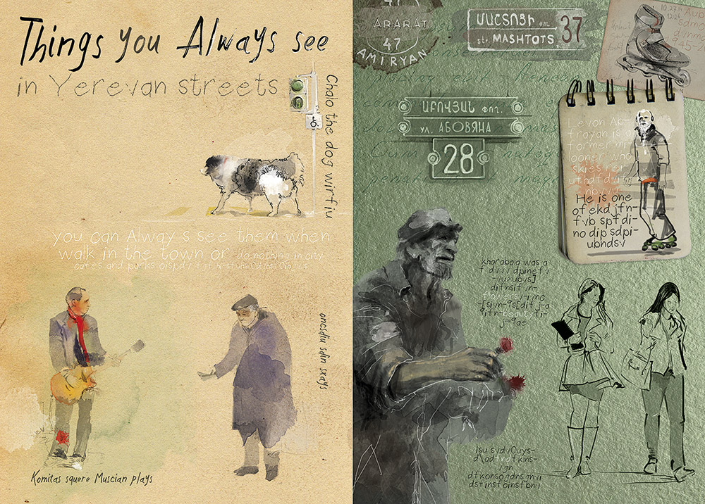 This June one of the most important cultural venues of Yerevan, Cafesjian Center for the Arts, hosted a presentation a one-of-its-kind publishing: “Yerevan Sketchbook”, a collection of sketches done by young artists Ararat Minasyan and Zack Demirtshyan.