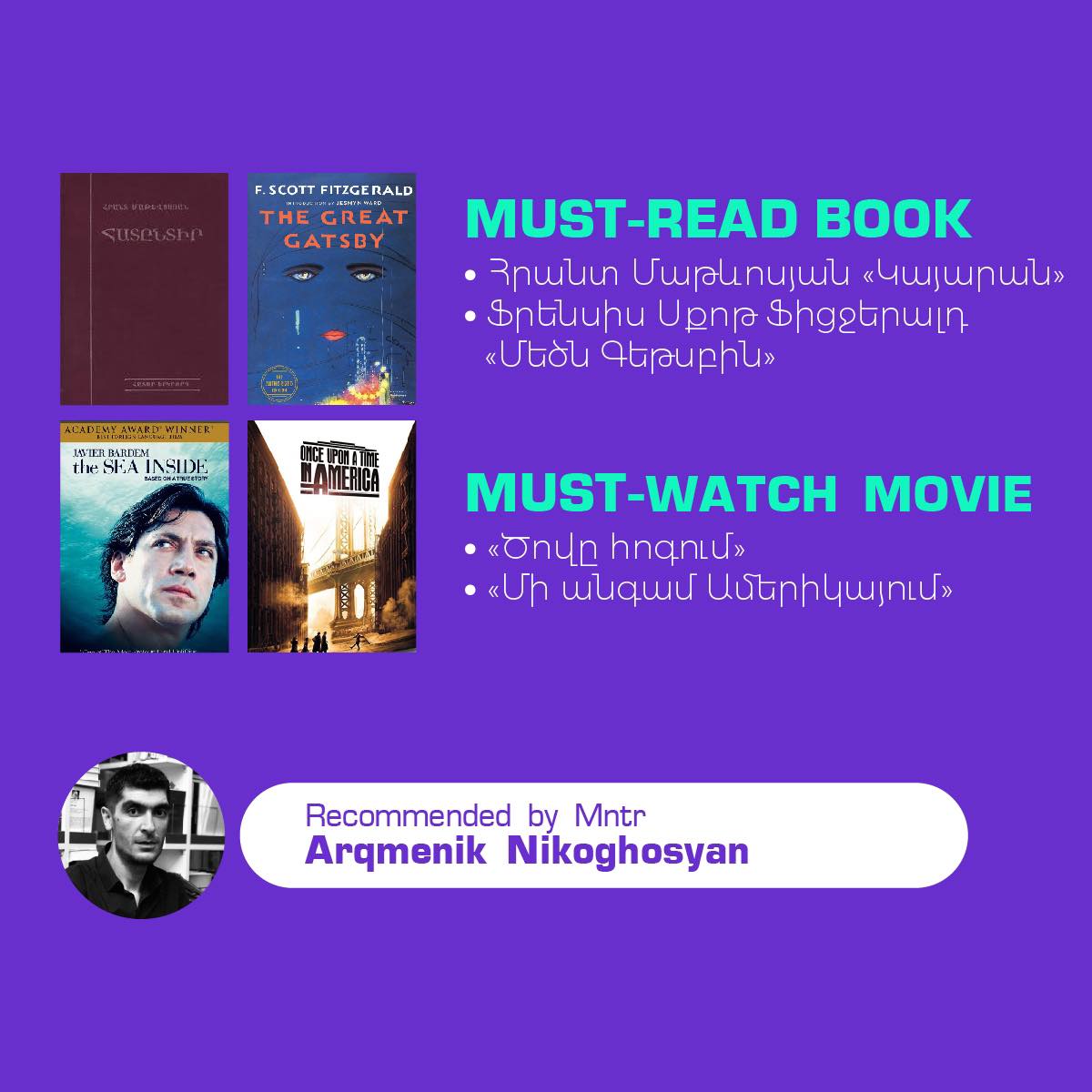 «Если раньше мы могли связать это с нехваткой книг, с качеством книг, с нехваткой переведенной литературы, то сейчас у нас этой проблемы нет. Теперь осталось снова вызвать интерес людей, потому что последние события очень сильно изменили нашу страну психологически. С другой стороны, технологии, которые мы использовали лет пять-шесть назад для продвижения книг, кажутся немного устаревшими, и, возможно, пришло время подумать о новых маркетинговых решениях, чтобы книги снова заинтересовали людей. Например, переводчики, авторы и известные люди продают книги в книжном магазине. В буквальном смысле людям предлагается не только купить книгу, но и взаимодействовать с авторами”, - говорит Аркменик Никогосян.
