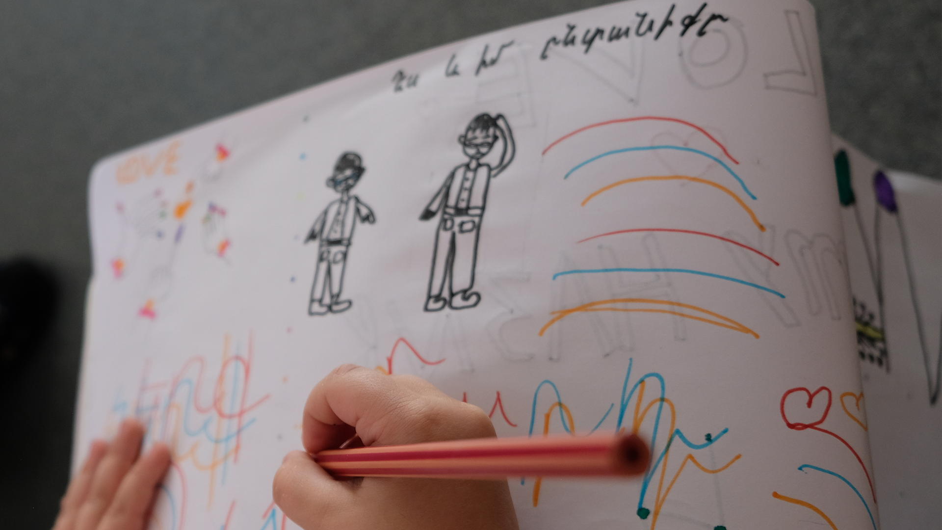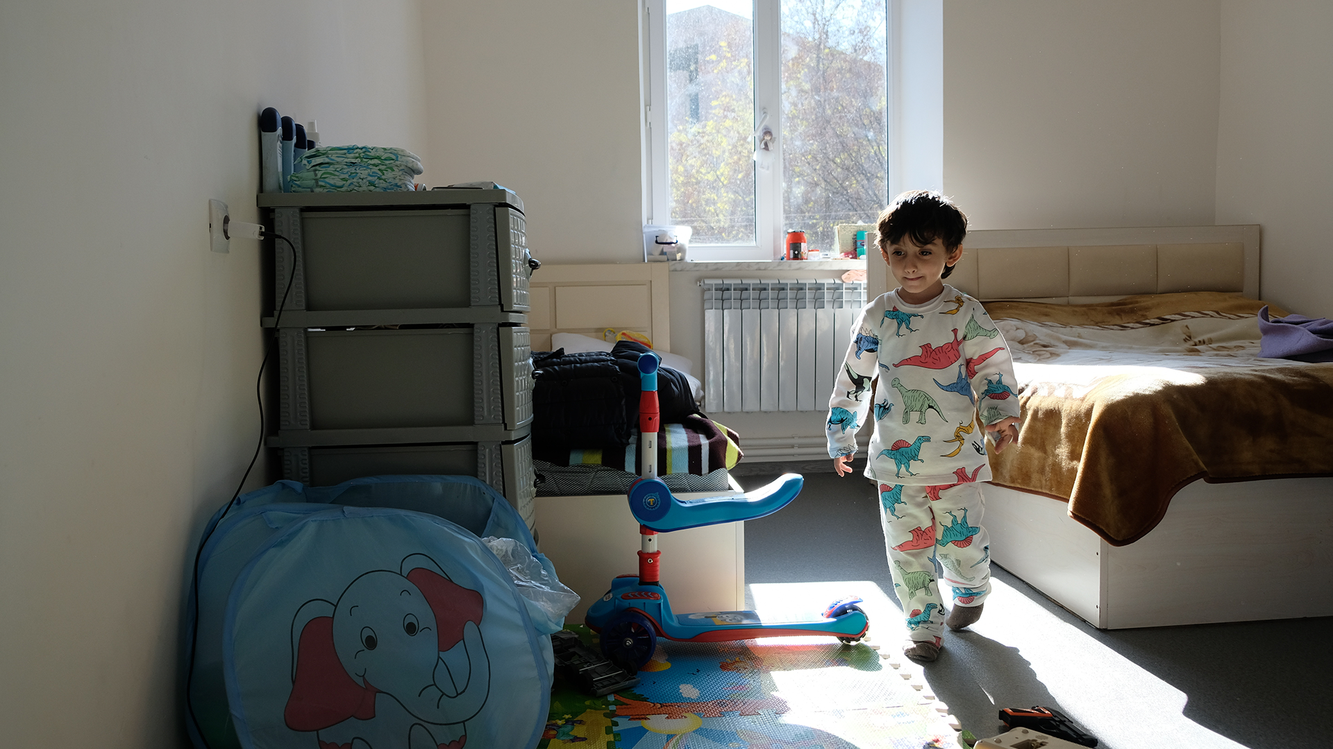 В другой комнате реабилитационного центра живет семья Назик Налбандян. Ее муж Арен — отец ее четырех детей, погиб во время последнего нападения на Арцах. Она с трудом отвечает на вопросы. «Я не могу слышать слова соболезнования, я пока не осознала, что его с нами нет», — говорит Назик.