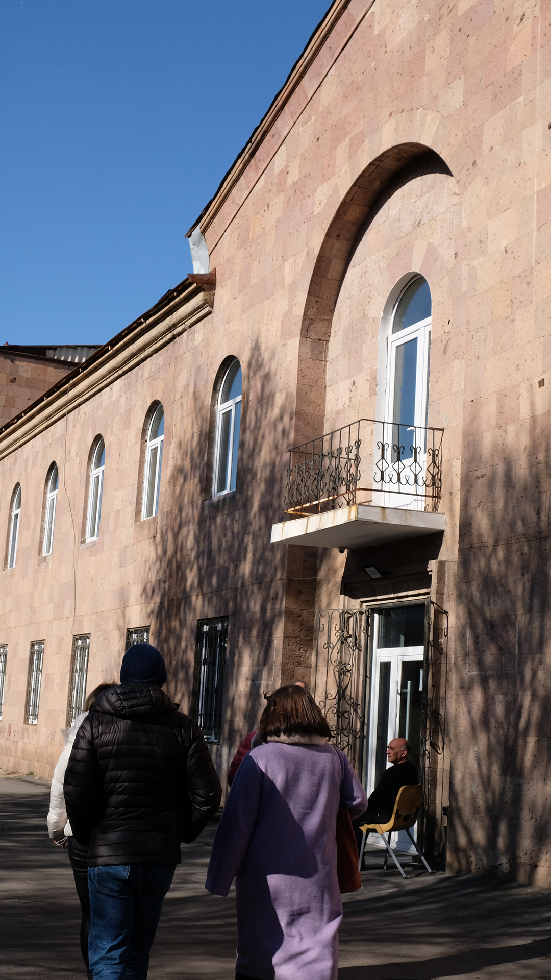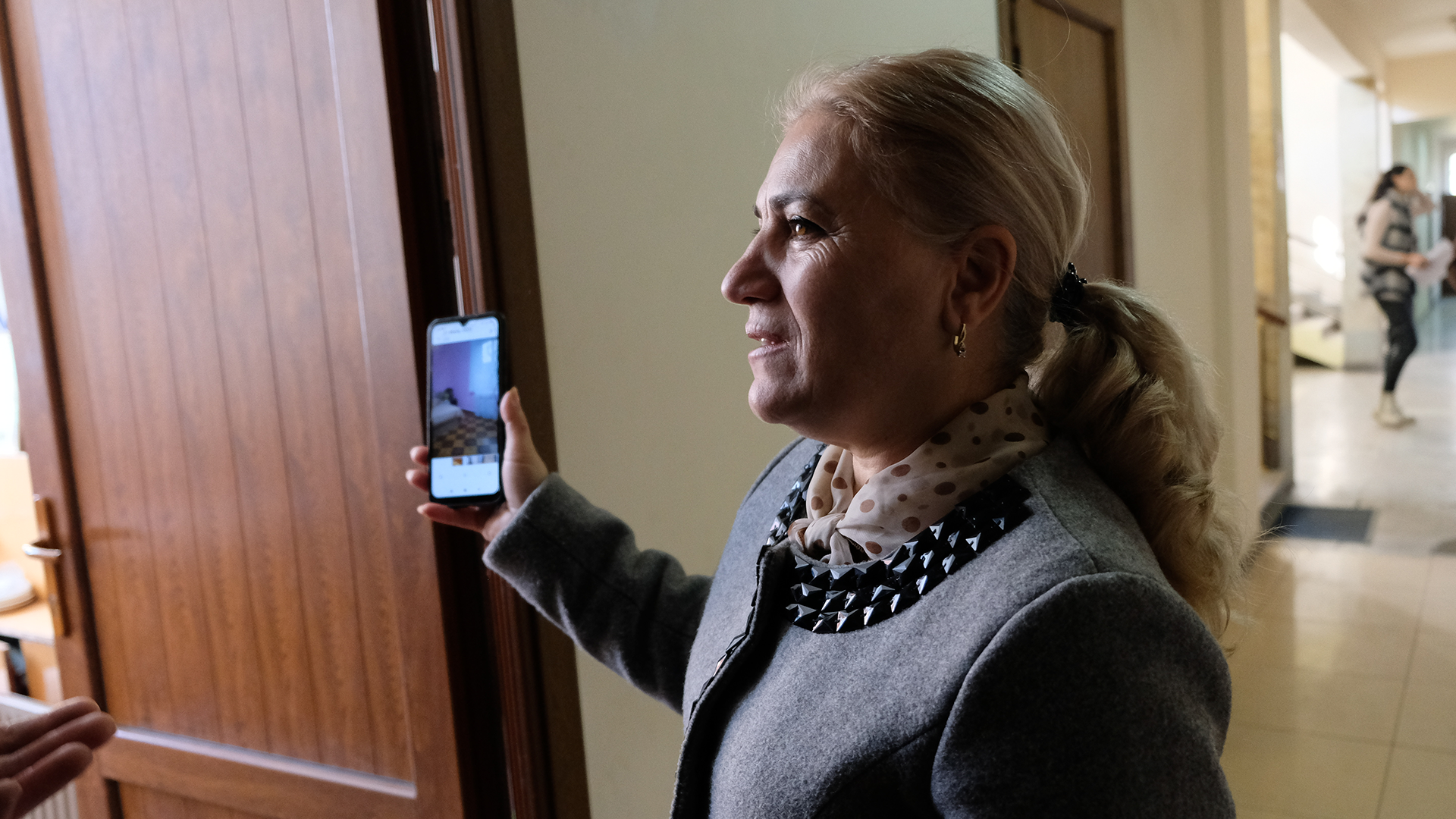 Лора Аванесян пришла в муниципалитет, поскольку ей среди прочего необходимы обогреватели. Их пока нет. Она жила в Арцахе с сыном – они оба военнослужащие. Лора последние 10 лет служила начальником медпункта, а сын — водителем скорой помощи, перевозил раненых и тела погибших.