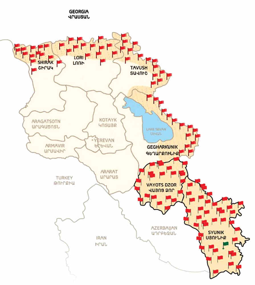 География проекта впечатляет - она охватывает значительную и стратегически важную часть территории Армении в ее северных, восточных и южных районах вдоль государственных границ. В нее вошли многие сельские общины Сюникской и Вайоцдзорской областей, а также Гегаркуникской, Тавушской, Лорийской и Ширакской областей (всего 220 населенных пунктов), что обеспечило реализацию проекта в большинстве областей Армении.